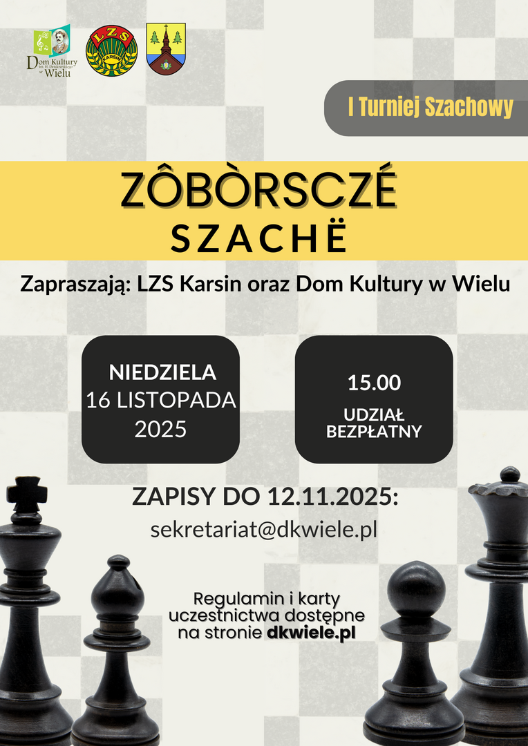 LZS Karsin oraz Dom Kultury w Wielu serdecznie zapraszają na I Turniej Szachowy "Zôbòrsczé Szachë"!